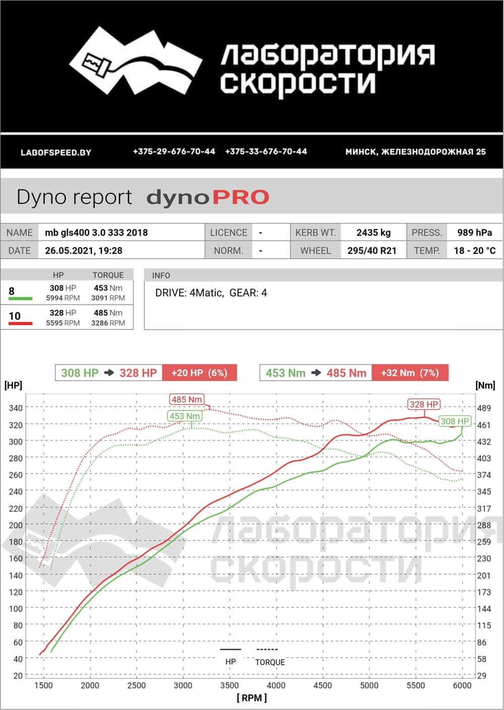 прирост 20 л.с. и 32 Hm
