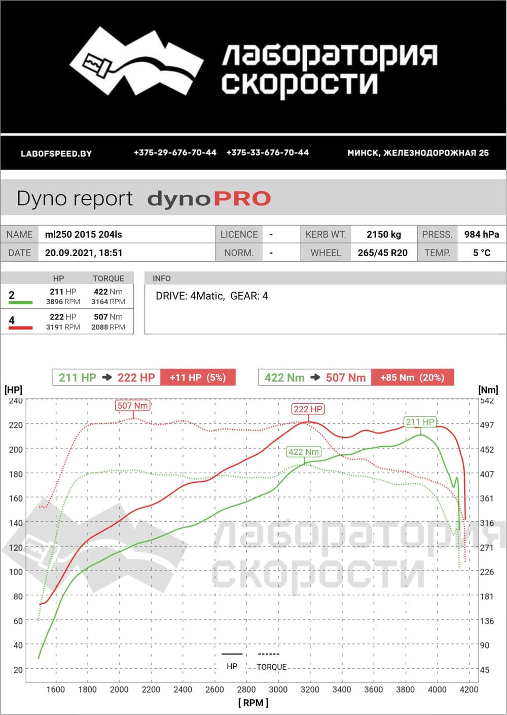 после тюнинга 222 л.с. и 507 Hm