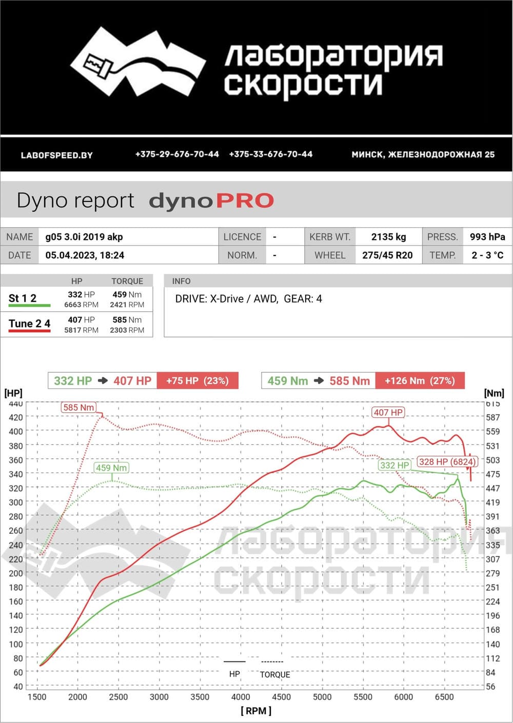 • после тюнинга 407 л.с. и  585 Hm