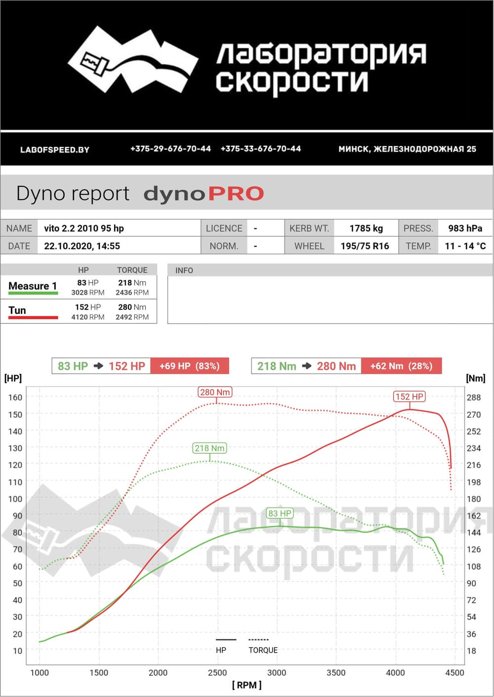Замеры чип-тюнинга Mercedes-Benz Vito W639 109 CDI MT L1H1 (95 л.с.) 2009